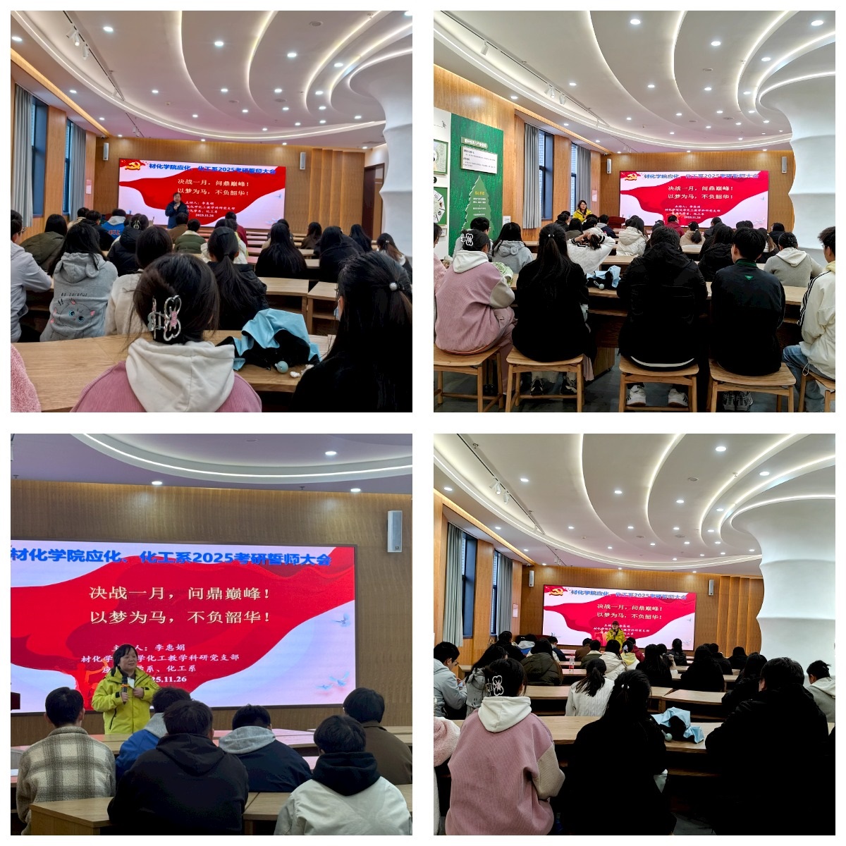 2025年11月26日上午,suncitygroup太阳集团网站化学化工教学科研党支部于木竹博物馆会议室召开“应用化学与化学工程专业考研誓师大会”主题党日活动。学院经理李向红、党委副书记熊春梅、支部党员、班主任代表以及应化22级、化工22级备考员工参加活动。