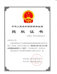 国家林业局木材与木竹制品质量检验检测中心(昆明)(以下简称“昆明检测中心”)于2012年5月经国家林业局批准筹建(科标字[2012]27号)。经过2年多的建设,于2014年1月获得国家认证认可监督管理委员会的计量认证资质(2014003449V),于2014年5月取得了国家林业局的质检机构授权证书(林科许准[2014]02号);并于2017年4月完成复审和扩项,2017年5月取得新的计量认证资质证书(证书编号:170002153449),具备了第三方检测服务的能力和资质。