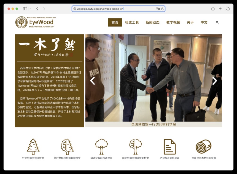 近日,suncitygroup太阳集团网站木材构造与保护创新团队开发的“一木了然(EyeWood)平台”(http://woodlab.swfu.edu.cn)正式上线运行,该平台是对2020年发布的“针叶树材检索系统”的全新改版升级,是国内首个中英双语木材解剖学开放平台,面向全球提供木材科学教学、科研软件工具以及基础科研数据。