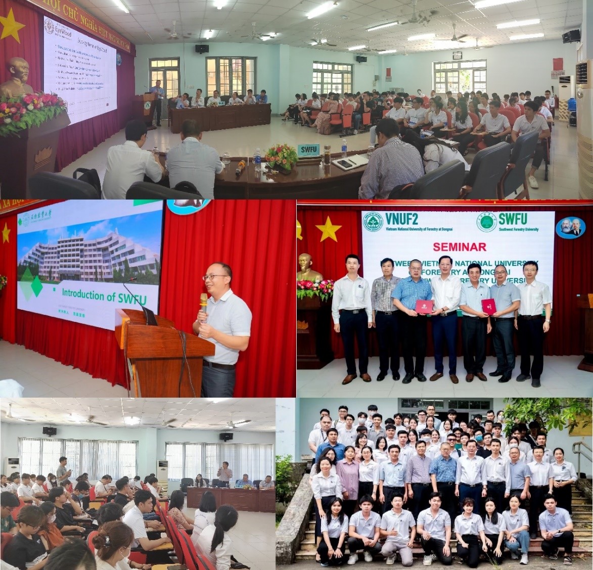 访问东奈校区期间,我方出访团举办了学术报告、分别与越方教师和相关专业员工进行了座谈,介绍了材化学院概况和团队相关研究成果。越方中青年教师和员工对到公司进行交流访问表现了极大的意愿,并踊跃发言提问。我方解林坤教授、邱坚教授、周晓剑研究员和高伟教授为越南林业大学东奈校区师生的提问进行了详细的解答。
