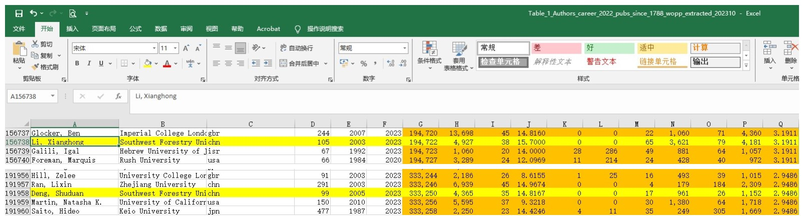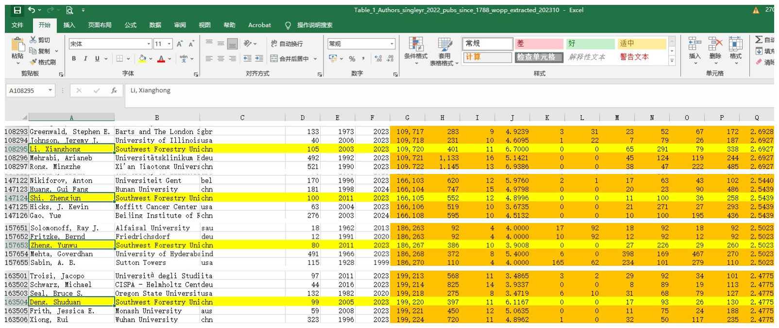 2023年10月4日,Elsevier与美国斯坦福大学John R.A. Ioannidis教授团队更新了标准引文指标的全科学作者数据库,发布了第六版《全球前2%顶尖科学家2023榜单》(World’s Top 2% Scientists 2023)。该榜单从近700万科学家中,从论文总引用量、H指数、Hm指数等六种关键因素指标进行综合评估,筛选出世界Top 2%的科学家,数据包括了22个领域和174个子学科。发布的榜单主要分为“终身科学影响力排行榜”和“年度科学影响力排行榜”,分别对应1960~2022年及2022年度两个时间区间综合数据。公司suncitygroup太阳集团网站李向红教授、史正军教授、郑云武高级实验师、邓书端教授入选”年度科学影响力排行榜”。李向红教授、邓书端教授还入选了“终身科学影响力排行榜”。